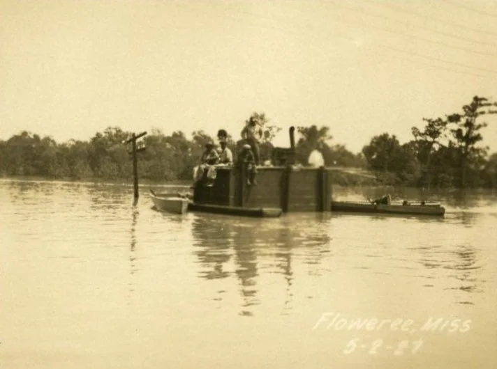 Black-and-white photographs of areas in Warren County, Mississippi impacted by the 1927 Flood.